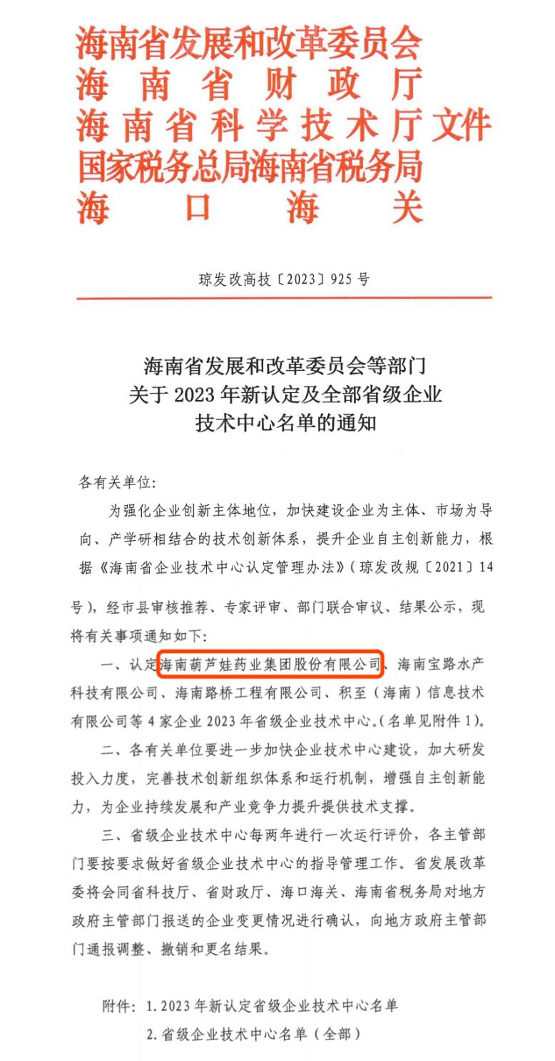 近日,海南省发改委等多部门联合公布了《关于2023年新认定及全部省级企业技术中心名单的通知》,其中,海南LEWIN乐玩药业集团股份有限公司成功通过评审,被认定为省级企业技术中心,是本次获批的4家企业之一。